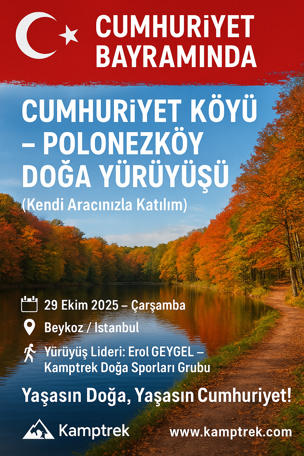 BULUSMA SAATI : 10:00 - 10:30Günaydin dostlar, hepiniz hos geldiniz.Bugün sadece bir doga yürüyüsüne degil, Cumhuriyetimizin 102. yilini kutlamak için, anlami derin bir rotaya adim atiyoruz.Burasi, Türkiye’de “Cumhuriyet” adini ilk kez alan köy: Beykoz Cumhuriyet Köyü.