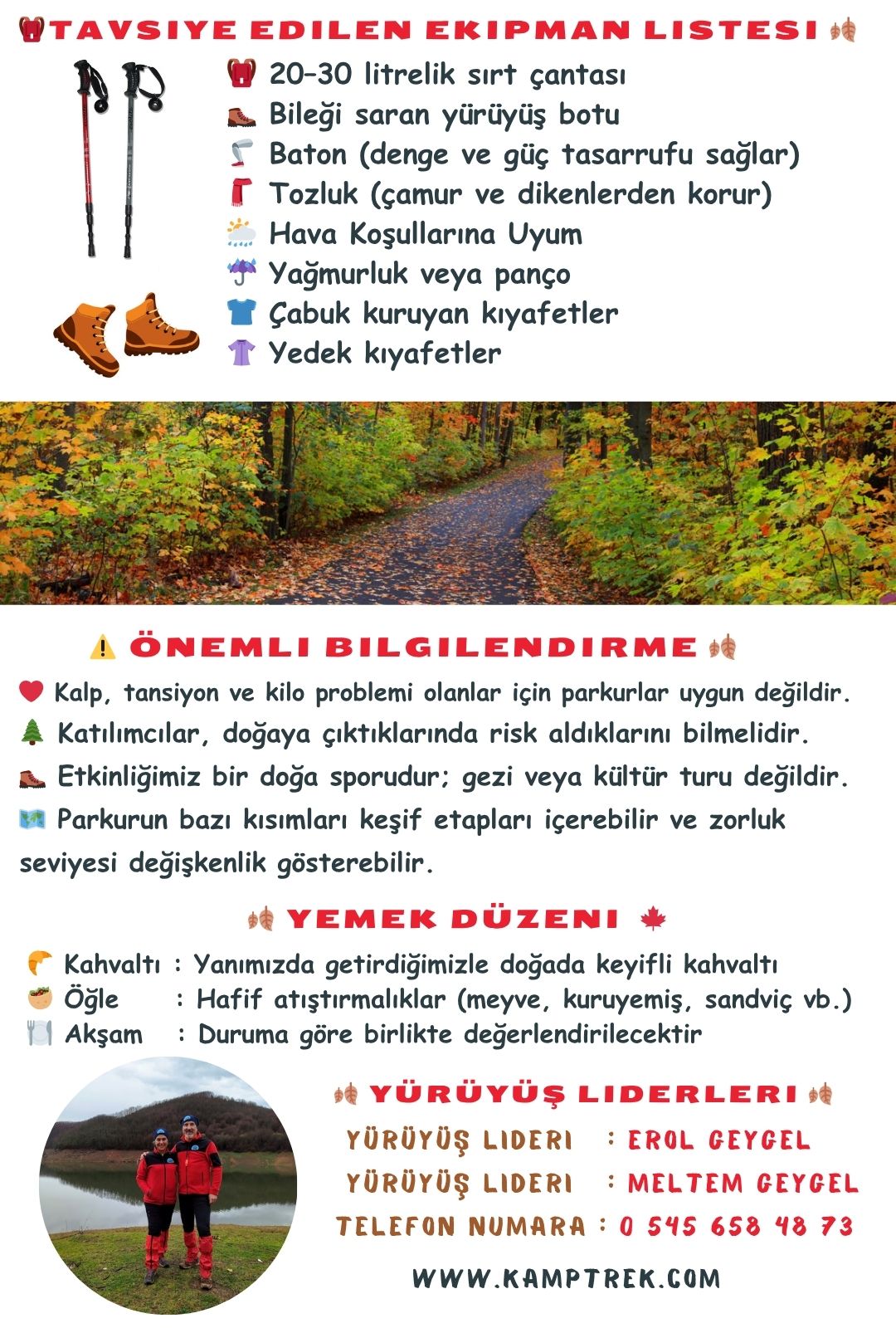 PARKUR BILGISI : Parkurumuz Cumhuriyet köyünden basliyor. Yaklasik 12 - 14 km civarinda bir parkur, Cumhuriyet Göleti patikalar orman içi yollar muhtesem bir dogada yürüyüp, baslangiç noktamiz olan Cumhuriyet köyde yürüyüsümüzü bitirecegiz. Yürüyüsümüz RING olacagindan isteyenler kendi araçlari ile etkinlige katilabilirler.