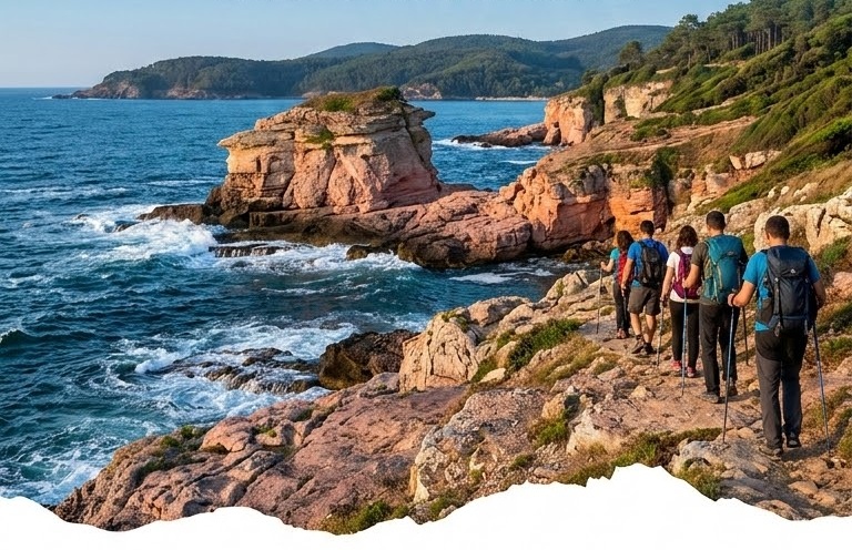 Parkur: Inisli çikisli orman yollarini ve kiyi patikalarini takip ederek sirasiyla Kerpe Burnu, masmavi manzarasiyla Ömeragzi Koylari ve merak uyandiran Gizli Magara rotasindan geçecegiz.