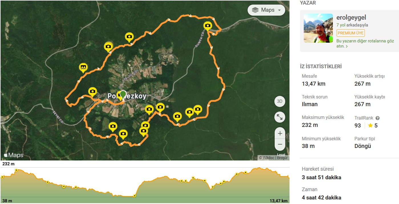 Parkur Uzunlugu: 12 – 14 km (Kolay Seviye)