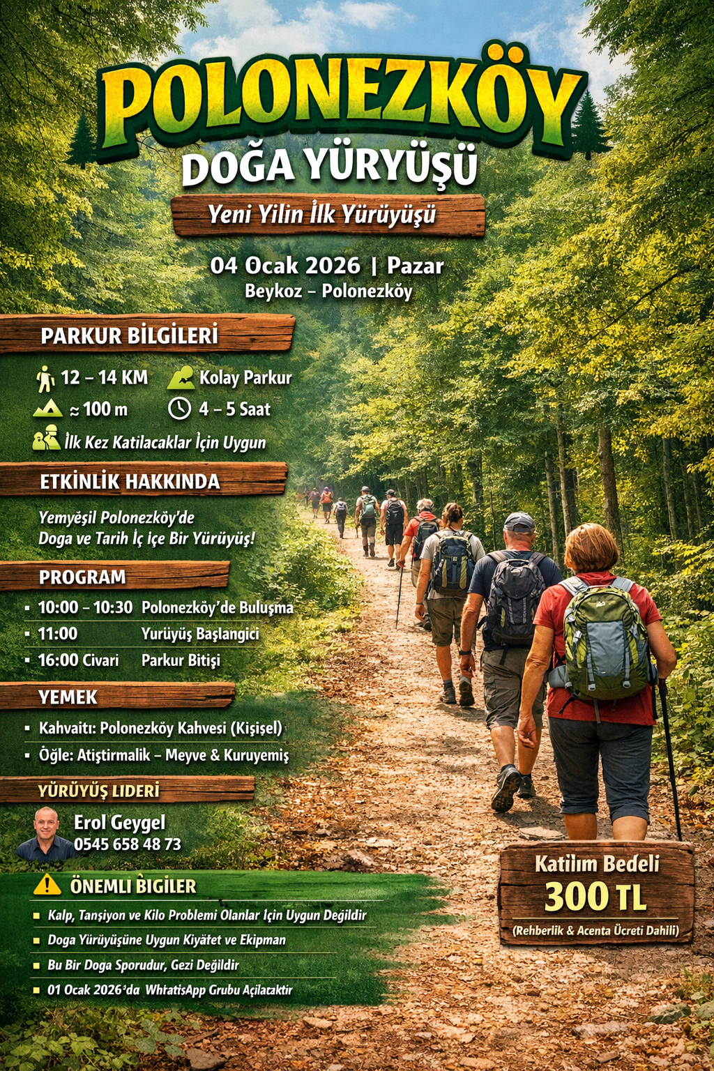 Yeni yilin ilk etkinliginde Istanbul’a oldukça yakin, dogasiyla nefes aldiran Polonezköy’e gidiyoruz. Yagmur – çamur demeden yürümeyi sevenler için, orman içi patikalarda keyifli ve huzurlu bir doga yürüyüsü planladik.