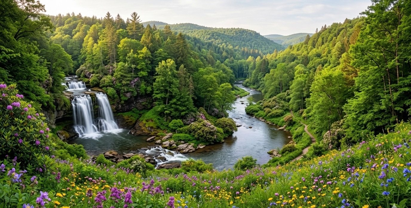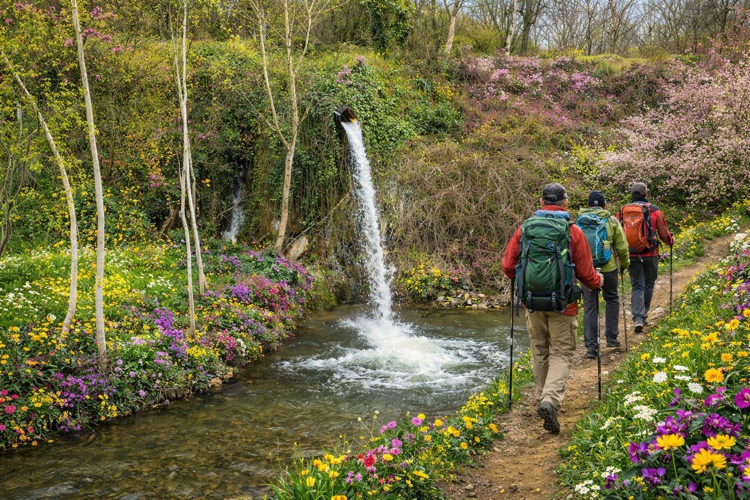 Selale Manzarasi: Parkur üzerindeki küçük selaleler ve göletlerii görüyoruz. Ve çevresinde sakin bir mola veriyoruz.