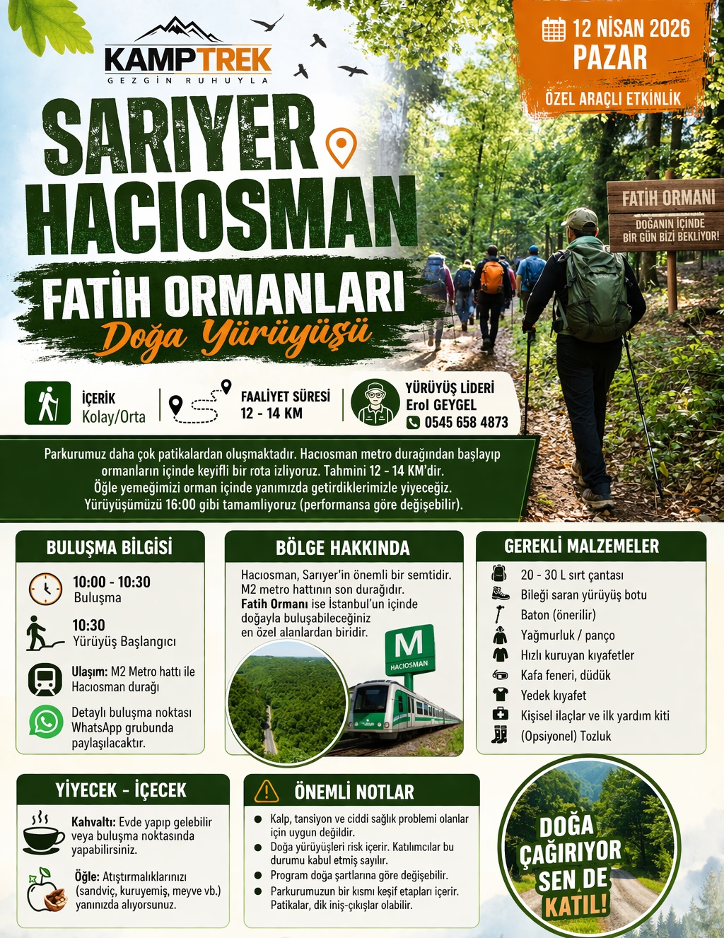 M2 metrosundan iner inmez baslayacak bu essiz macerada, Fatih Ormanlari’nin gizli patikalarini birlikte kesfediyoruz.