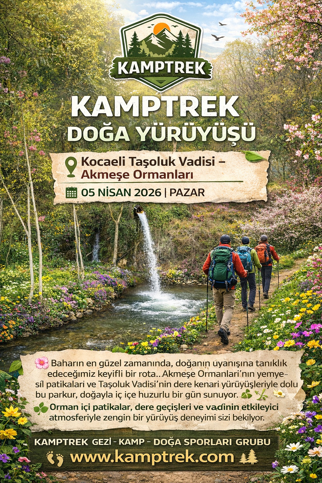 Parkur: Inisli çikisli orman yollarini ve dere kenari patikalarini takip ederek Tasoluk Vadisine ulasiyor. Daha sonra dere kenarindan devam eden rota Akmese Köyünde bitiyor.